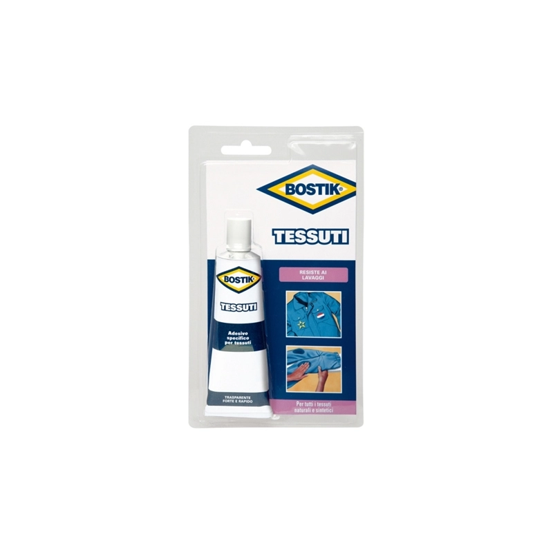 Adesivo a presa rapida. Ideale per tessuti naturali o sintetici fra loro o su qualsiasi supporto. Pronto all'uso. Trasparente. Non macchia. Resiste ai lavaggi. Contenuto gr 50