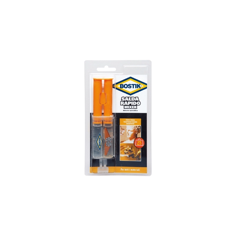 Adesivo epossidico bicomponente trasparente a forte presa, con vaschetta di miscelazione.Ideale per vetro, ceramica, cristalli, marmo, pietra, acciaio, metalli, plastiche. Incolla oggetti anche con superfici non combacianti. Incolla in 15 minuti.Non ritira durante l'indurimento: senza solventi.Lavorabile con trapano,smeriglio,carta abrasiva. Resiste ad acqua,solventi,grassi,oli,ecc.Verniciabile.