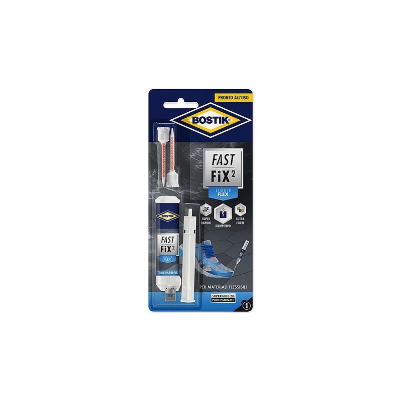 Forte adesivo di riparazione bicomponente riempitivo a base di cianoacrilato. La consistenza in gel consente applicazioni in tutte le direzioni, anche in verticale. Incolla e ripara in pochi secondi molti tipi di materiali flessibili come pelle, gomma, tessuto, PVC morbido sia tra loro che con altri materiali. Non indicato per PE, PP e PTFE. Resistente all'acqua. Senza solventi. Trasparente.