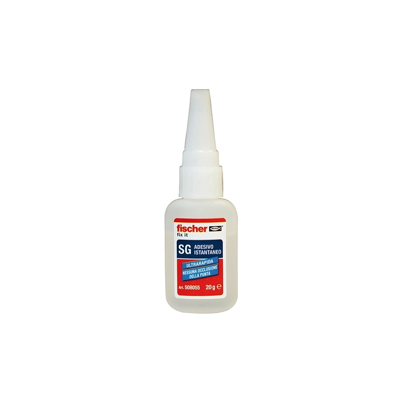 Adesivo liquido istantaneo incolore a base di cianoacrilato. Sistema di antiocclusione del beccuccio. Adatto per: legno, metallo, plastiche (non PE, PP, Teflon e silicone), gomma, ceramica, tessuti e pelle, carta. Privo di solventi. Contenuto 20 gr.