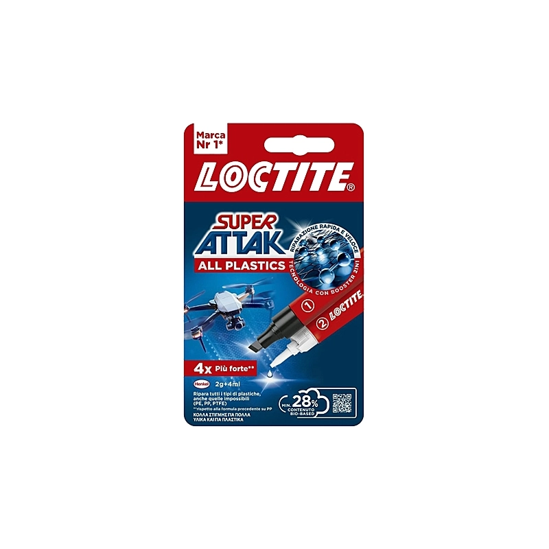 Adesivo istantaneo per plastica con attivatore. Ideale per PE, PP, PTFE ed altri materiali plastici. Tubetto da gr 2