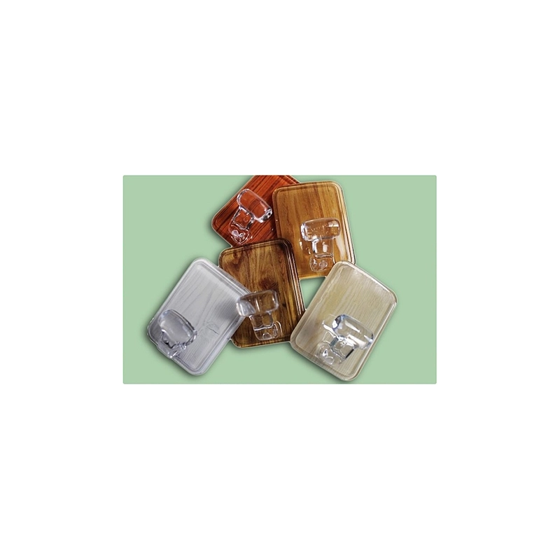 Ganci adesivi in plastica trasparente con decoro sul fondo. Modello = fantasia
