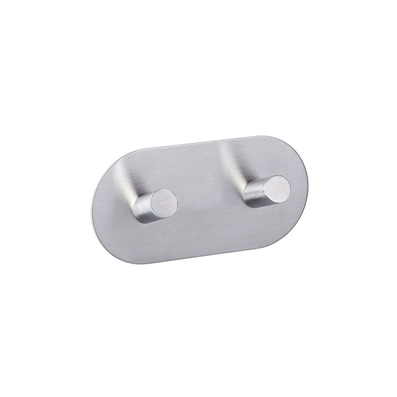 Gancio a parete a due posti in acciaio inox. Autoadesivo. Dimensioni 100x50x28 mm. In blister da 1 pz.