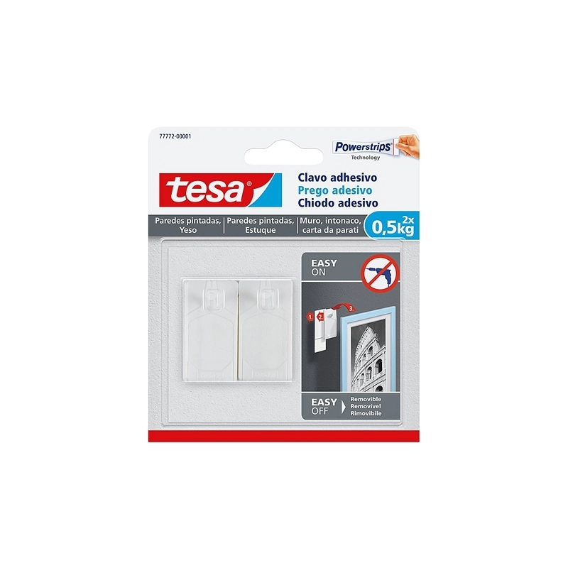 Chiodo adesivo fisso per carta da parati ed intonaco. Colore bianco. Tenuto massima 0,5 kg. In blister da 2 pz.