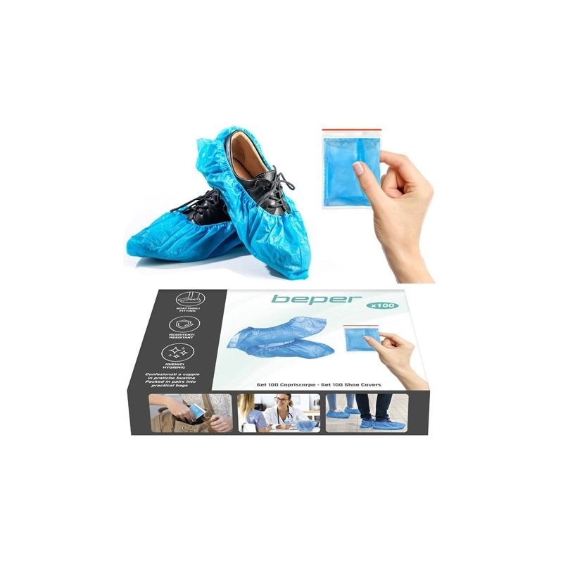 Copriscarpe impermeabili ideali per proteggere il pavimento dallo sporco e dai germi per mantenerlo pulito ed igienizzato. Taglia unica. Confezione da 100 pz.