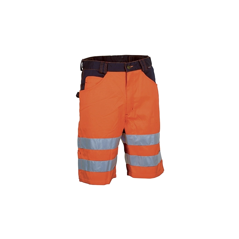 Pantaloni corti in materiale riflettente con ampie tasche anteriori, 2 tasche sul retro, con tasca porta metro e passante porta martello. Composizione 40% poliestere e 60% cotone. Peso 240 g/mq. Colore arancio. Bande e inserti reflex 3M SCOTCHLITE. Normativa EN ISO 13688:2013. Modello = taglia