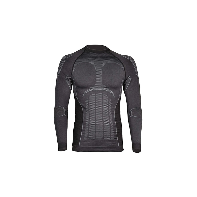 Maglia termica a maniche lunghe. Composizione 67% nylon, 23% polipropilene, 10% Elastan. Sistema 3D termoregolatore, traspirante e antibatterico. Colore antracite. Modello = taglia