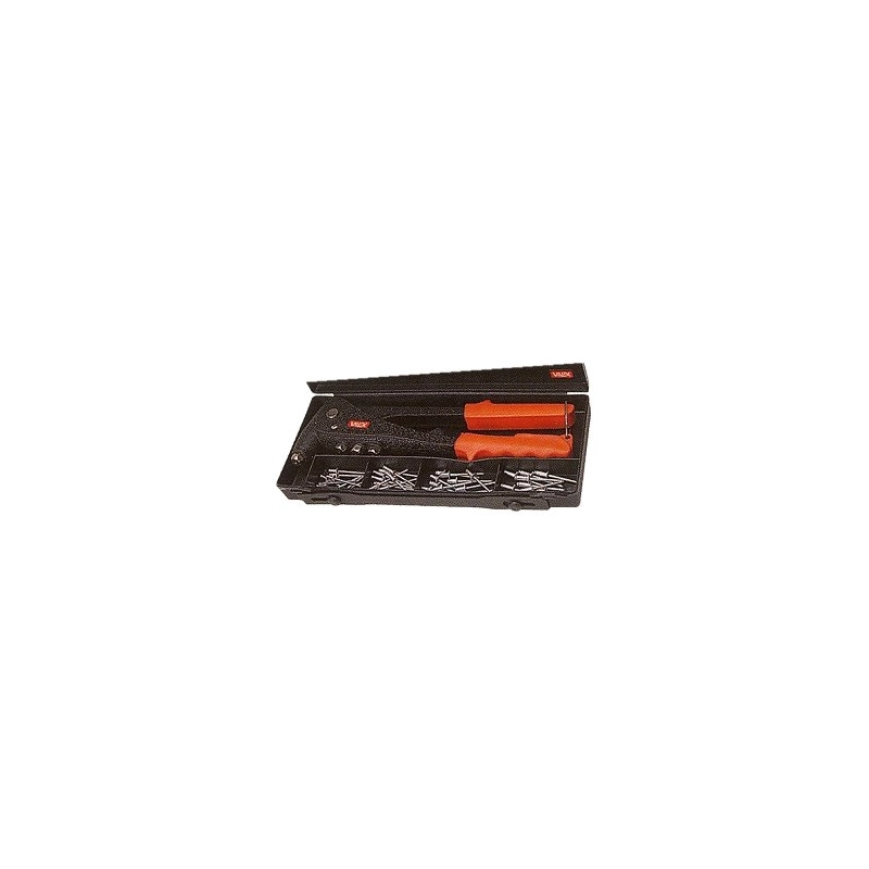 Per rivetti rame e alluminio diam.mm. 2,4 - 3,2 - 4,0 - 4,8. In valigetta plastica completa di 80 rivetti assortiti.