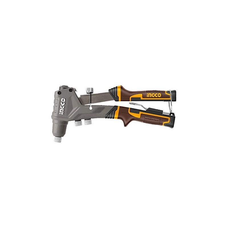 Rivettatrice a mano con corpo in alluminio, impugnatura ergonomica. Con ugelli intercambiabili diametro 2,4 / 3,2 / 4,0 / 4,8 mm. Lunghezza 200 mm.