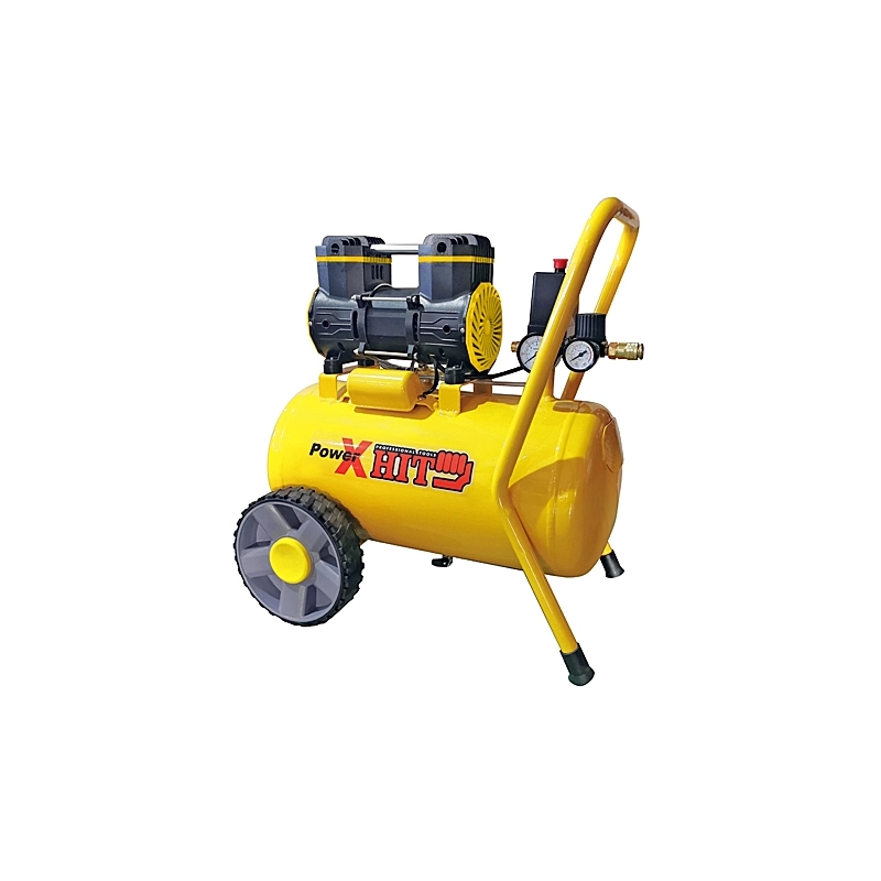 Compressore OIL-LESS silenziato 63 dB. 230 V. 1,5 Kw. Aria aspirata 220 lt/min. Pressione max 8 bar. 2880 rpm giri/min. Maniglia comfort. Ruote maggiorate. Dimensioni 52x24x55 cm. Capacita' serbatoio 24 lt. Peso 19,5 kg.