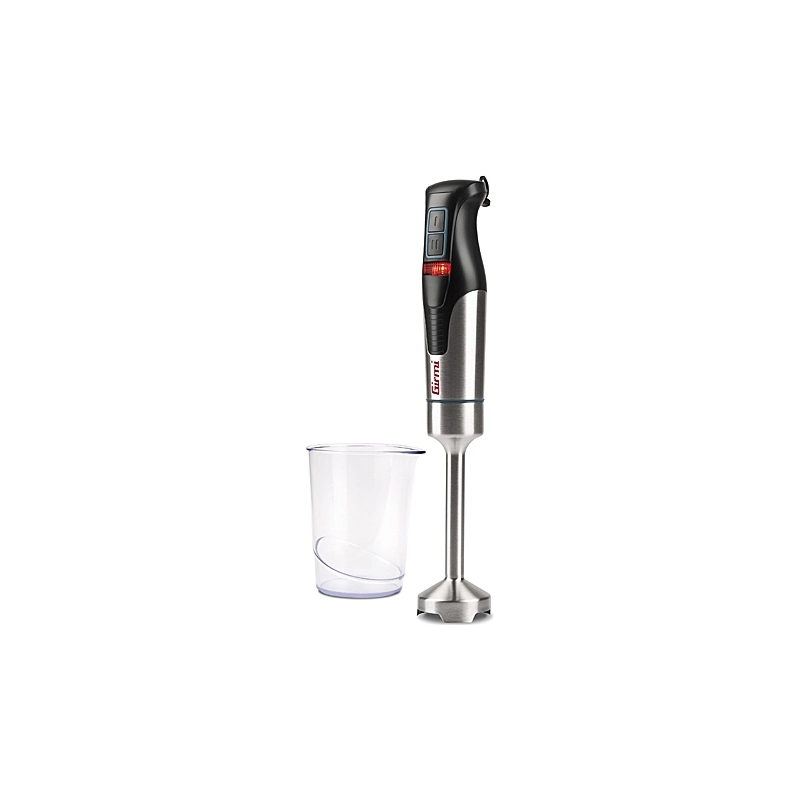 Mixer professionale ad immersione. 800 Watt. 2 velocita'. 4 lame. Motore professionale DC. Impugnatura ergonomica. Fusto in acciaio inox smontabile. Completo di bicchiere. Dimensioni 65x385 mm. Peso 0,95 kg.