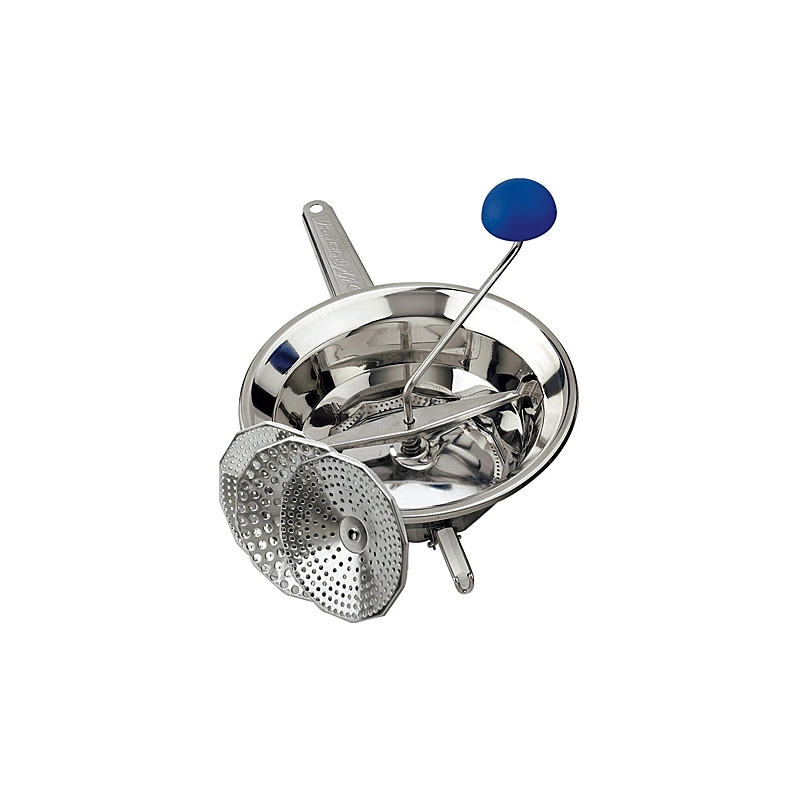 In acciaio inox 18/10, dotato di 3 filtri con misure differenti e 3 piedini pieghevoli. Modello = diametro cm