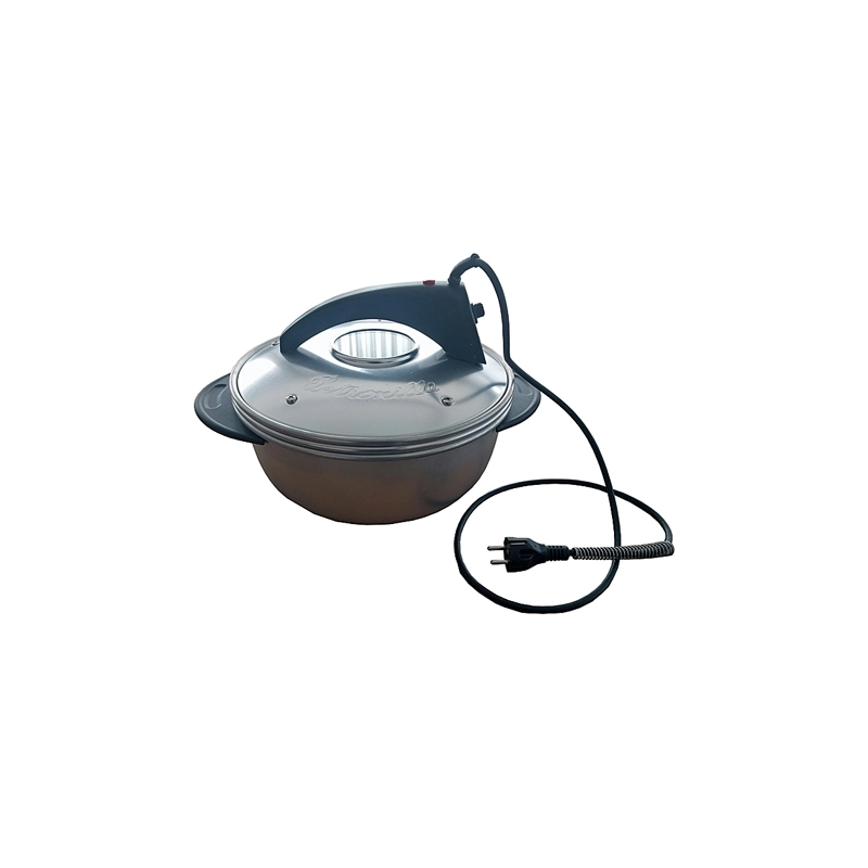 Potenza 900 W. 230V. Pentola ottima per grigliate di pesce, carne e verdure, zuppe, arrosti, bolliti. Il cibo non attacca e favorisce cotture dietetiche evitando l'uso di grassi. Griglia e teglia inclusi nella confezione. Con termostato graduato per la programmazione della cottura. Ricettario incluso. Diametro 32 cm, altezza 20 cm. Peso 3,55 kg.