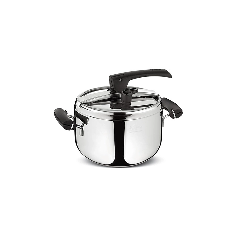 Pentola a pressione di diametro 22 cm. Incluso: ricettario e misurino ecodose. Con sistema LEVERBLOCK che evita le aperture accidentali. Adatte anche per induzione. Modello = capacita' lt