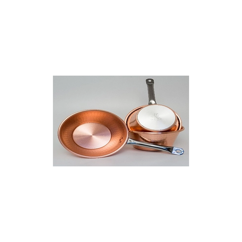 Paiolo in rame con manico in acciaio. Per cottura ad induzione. Modello = diametro cm