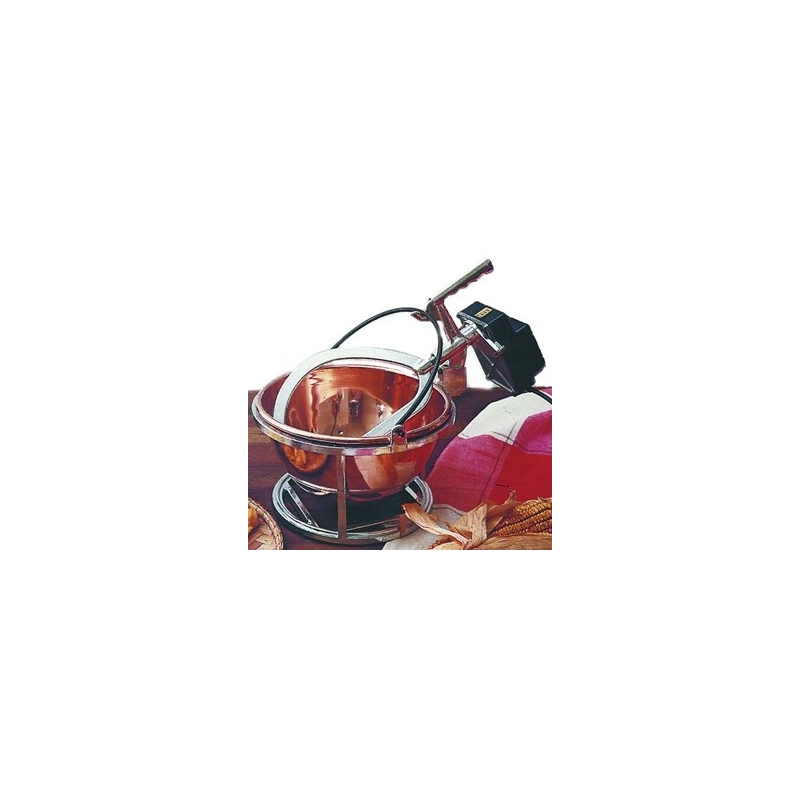 Con paiolo in rame e supporto in alluminio. Motore 220V - 50 Hz. Disponibili motori di ricambio. Modello = Diametro cm/capacita' l