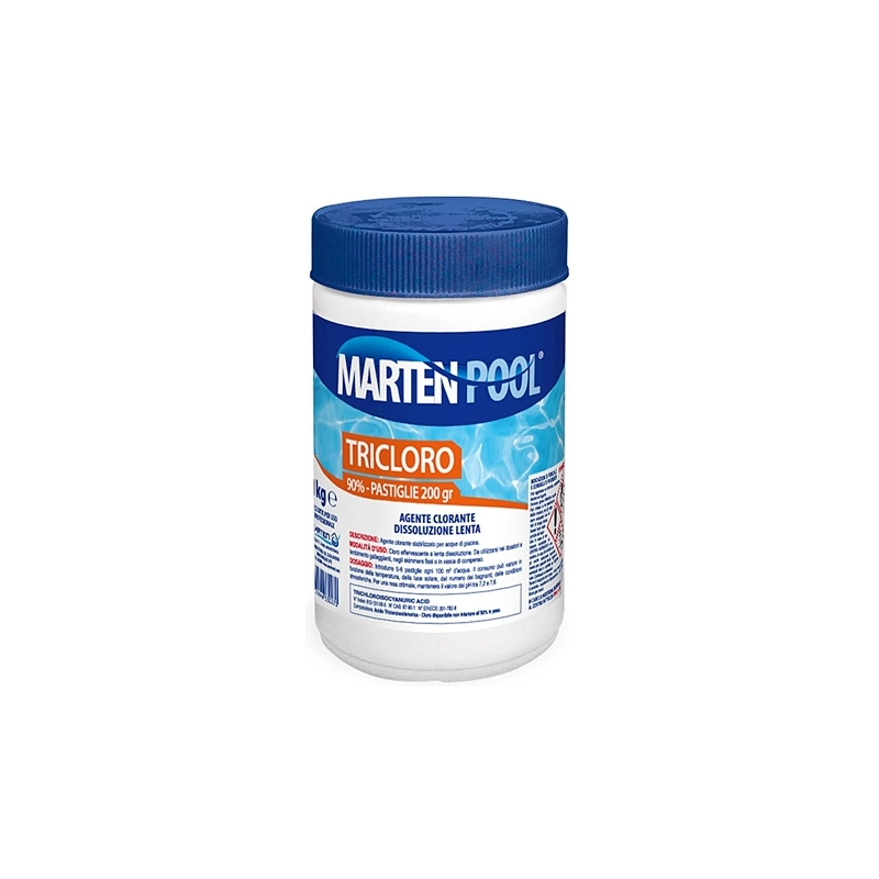 Agente clorante stabilizzato per acque di piscina. Cloro effervescente a lenta dissoluzione. Da utilizzare nei dosatori a lambimento galleggianti, negli skimmers fissi o in vasca di compenso. In pastiglie da 200 gr. Introdurre 5-6 pastiglie ogni 100 m3 d'acqua. Per una resa ottimale mantenere il valore del PH tra 7,2 e 7,6. Modello = contenuto kg