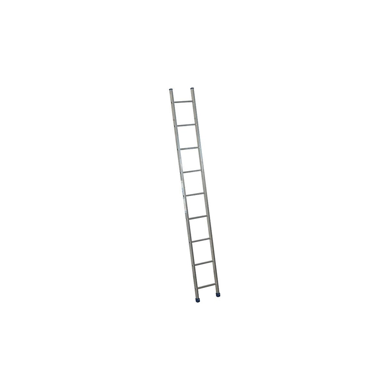 Scala d'appoggio a pioli quadri 24x24 mm. In alluminio. Calzari alti in gomma antisdrucciolo di base e copri testa in alto. Per uso industriale e agricolo. Larghezza scala 34,5 cm. EN131 - D.Lgs 81/2008. Portata max 150 kg. Con altezza inferiore a 300 cm sono a normativa EN131 senza barra stabilizzatrice. Modello = numero gradini/altezza in cm/misura montante mm
