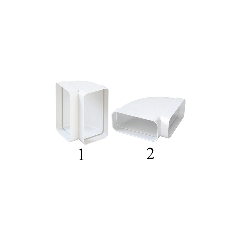 Curva in ABS per tubo rettangolare. Per la canalizzazione dell'aria. Colore bianco. Modello = misura mm/installazione/numero foto