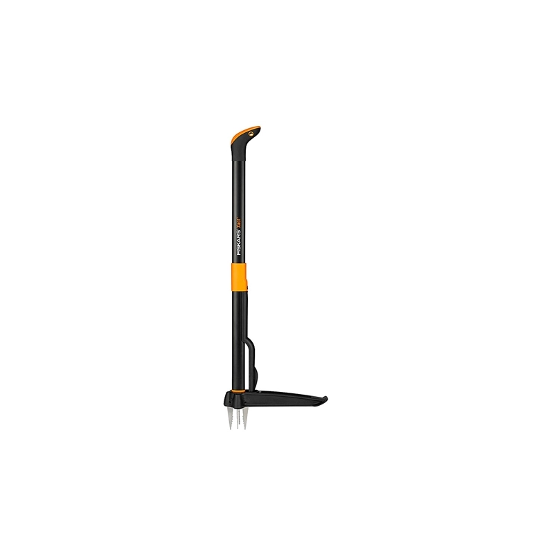 Estirpatore con manico e impugnatura Softgrip. Lunghezza mm 1000, per una posizione di lavoro comoda e corretta. Pinze in acciaio inossidabile. Punto di leveraggio con pedale a livello del suolo. Peso gr 950