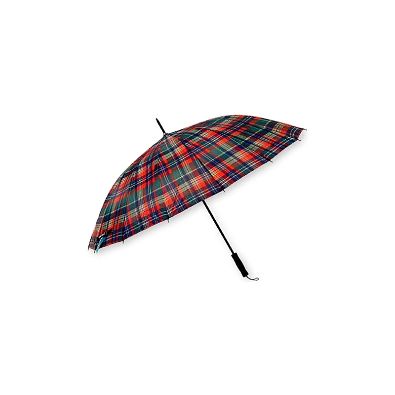 Ombrello in nylon, 16 stecche, diametro 76 cm. Apertura automatica, manico dritto gommato, stecche in acciaio. Colori e fantasie assortite.