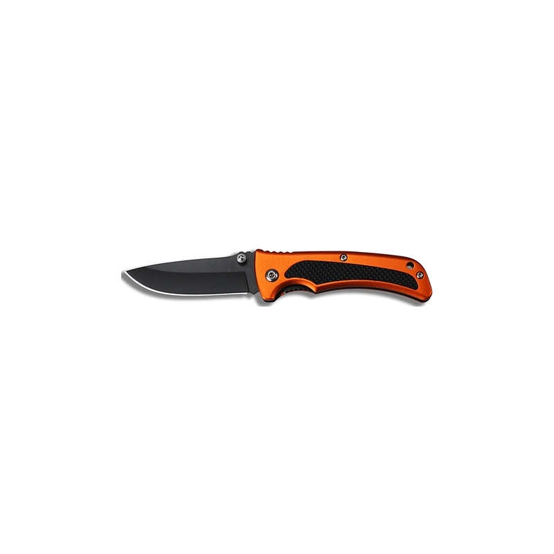 Lama in acciaio inox. Manico arancio. Lunghezza 16,5 cm. Chiusura a serramanico. Impugnatura in alluminio e gomma.