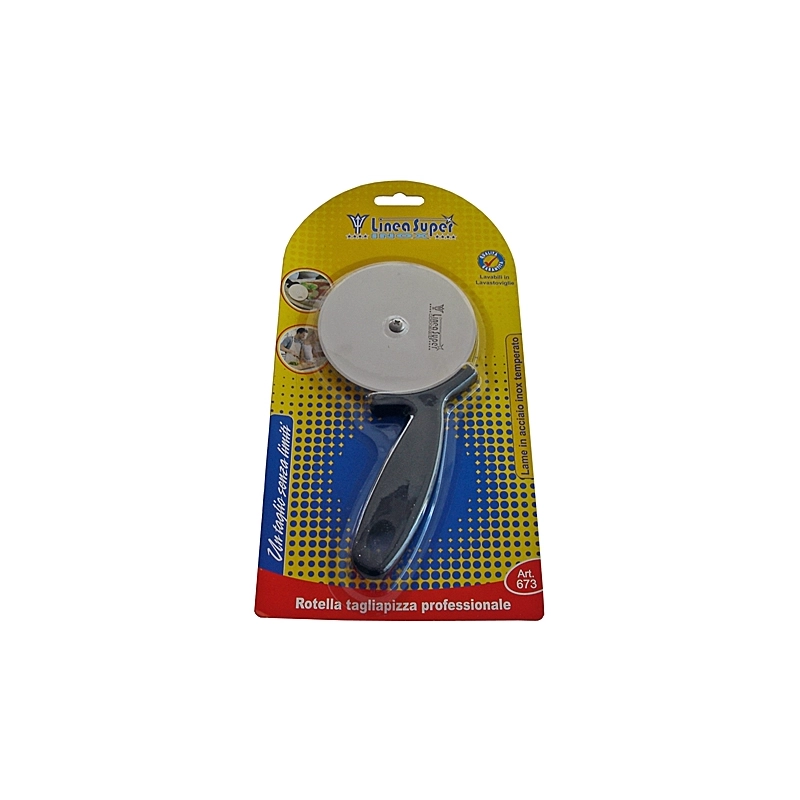 Rotella tagliapizza con lama in acciaio inox. Lavabile in lavastoviglie.