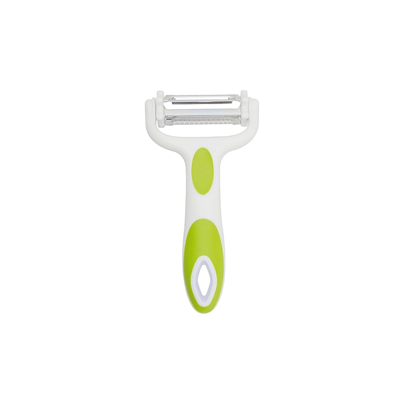 Sbucciaverdure universale con 3 lame: liscia per sbucciare patate e ortaggi a buccia dura, dentellata per pelare facilemente pomodori, mele, kiwi e lama julienne per carote e zucchine.