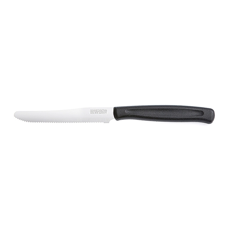 Coltello a punta arrotondata con dentatura speciale larga. Manico in polipropilene colorato. In blister da 6 pz. Modello = colore manico
