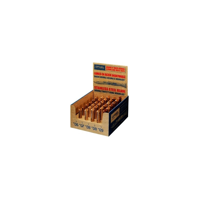 Espositore 30 pz. coltelli misti (6pz. n.6 - 6pz. n.7 - 12pz. n.8 - 6pz. n.9).Modello = materiale lama/articolo