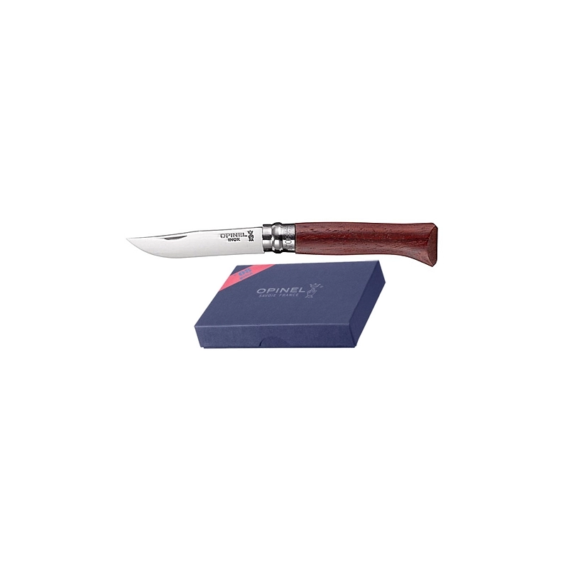 Lama in acciaio inox lucidata a specchio, manico in Padouk verniciato. Dotato di dispositivo bloccalama "virobloc". Modello = numero/lunghezza lama mm