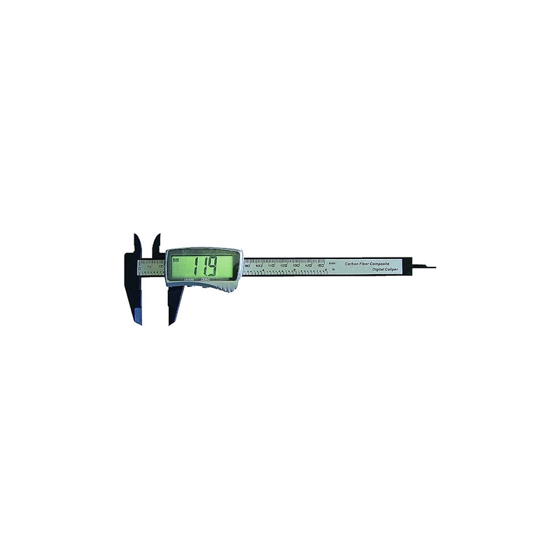Calibro digitale in fibra di carbonio. Range di misurazione mm 0-150. Precisione +/- 0,1 mm.
