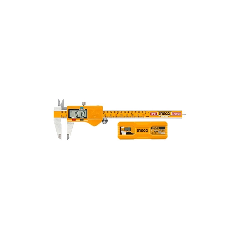 Calibro in acciaio. Range di misurazione mm 0 - 150. Quattro tipi di misure: interni, esterni, profondita', altezze. Conversione mm/inches. Precisione +/- 0,01 mm.