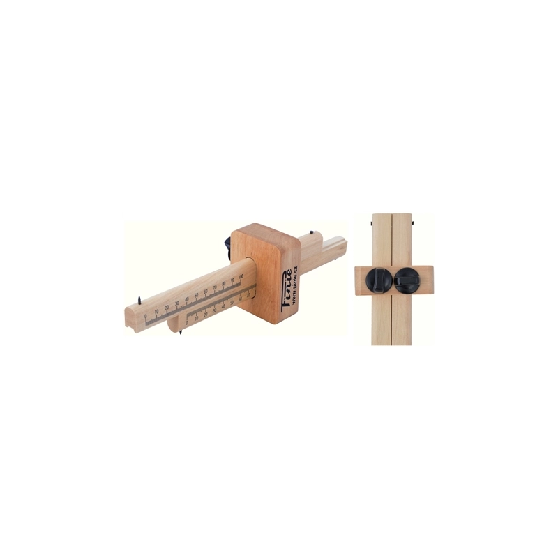 Graffietto in faggio con doppia scala e doppio fermo indipendente. Lunghezza di lavoro mm 170. Dimensioni 210x75x65 mm.