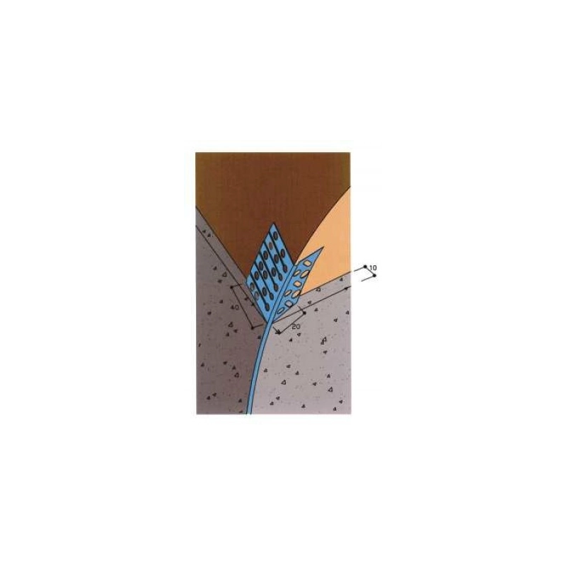 Paraspigolo ad arco interno per intonaco, in lamiera zincata gr. 200/m2. Lunghezza 300 cm. Spessore intonaco mm 10. Dimensioni mm 20x40.