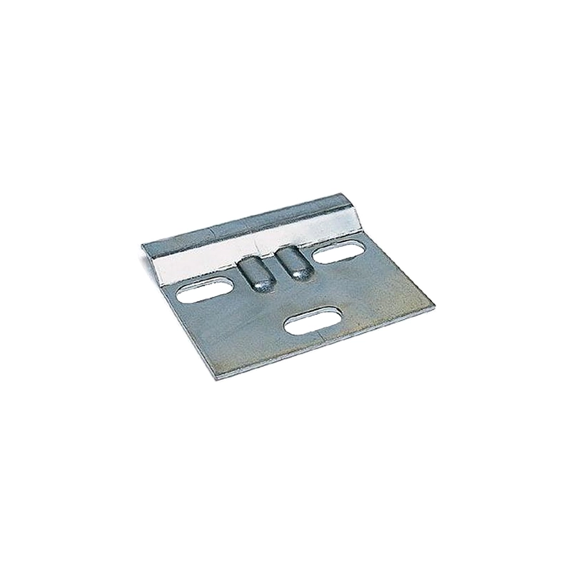Piastrina per attaccaglia reggipensile. Finitura zincata. Dimensioni 50x60 mm. In blister da 4 pz.