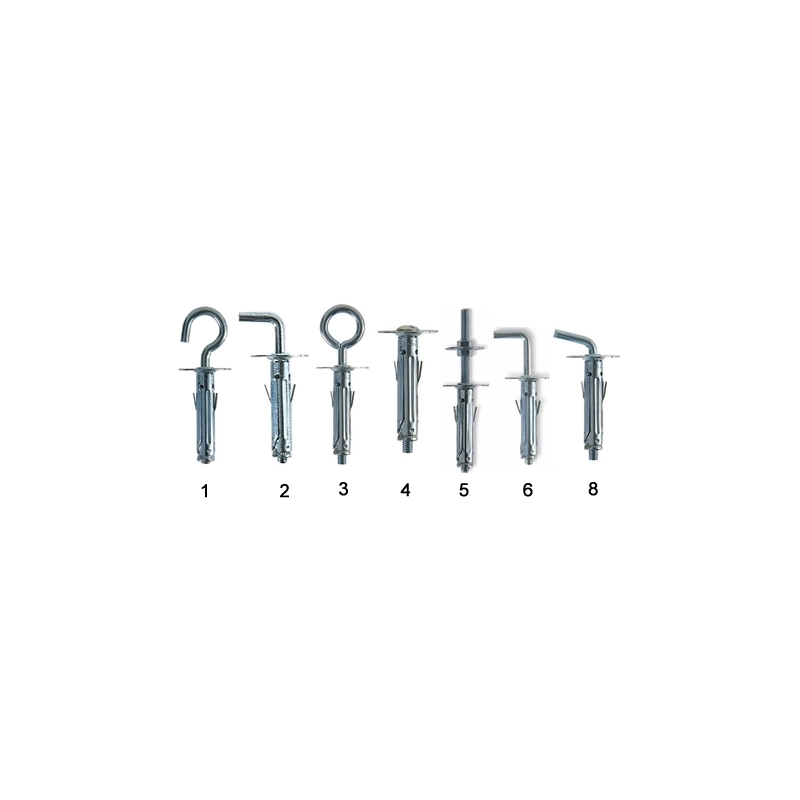 In acciaio. Diametro 9 mm. Lunghezza tassello 45 mm. Filetto M5. Modello = articolo/n.immagine