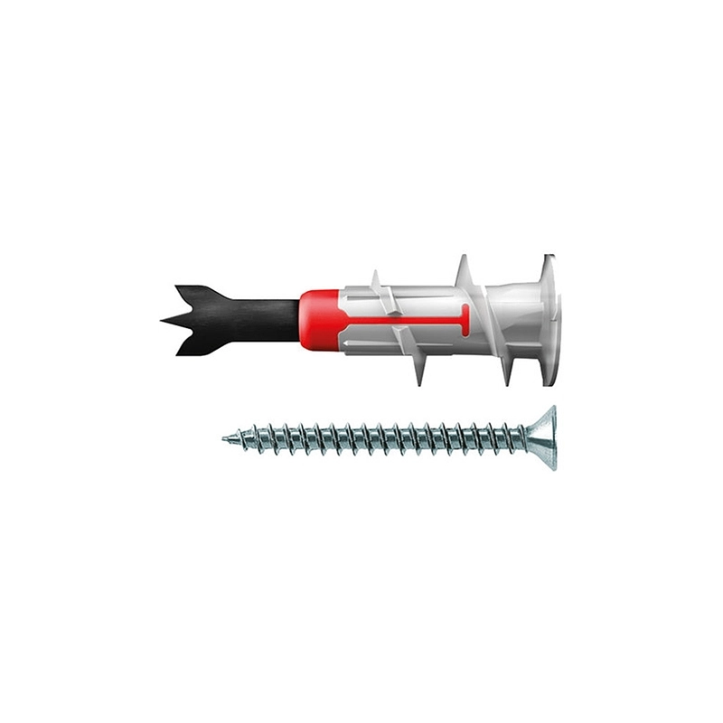 Tassello con speciale punta metallica autoforante e centrante per installazioni facili e veloci su pannelli e lastre di cartongesso. Con elica rinforzata che assicura una profonda perforazione delle lastre. Con lamelle anti-rotazione. Modello = con o senza vite a testa svasata piana a croce PZ 4,5 x 40 mm