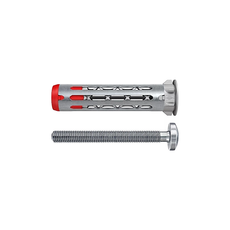 Tassello bimateriale da 55 mm per il fissaggio su tutti i pannelli di spessore da 9,5 a 30 mm. Corpo metallico che si piega ancorandosi al retro del pannello, la sottostruttura in nylon si annoda garantendo ulteriore resistenza a trazione. Indicato per cartongesso e gessofibra, pannelli truciolari, pannelli in fibra di legno e in compensato. Modello = diametro foro mm/diametro vite/impronta