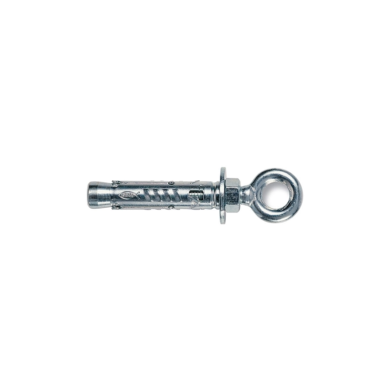 Vite con occhiolo in acciaio classe 8.8 zincata. Per fissaggi su tutti i materiali edili pieni e compatti. Modello = diametro x lunghezza tassello mm/sporgenza occhiolo mm/filettatura M x lunghezza mm