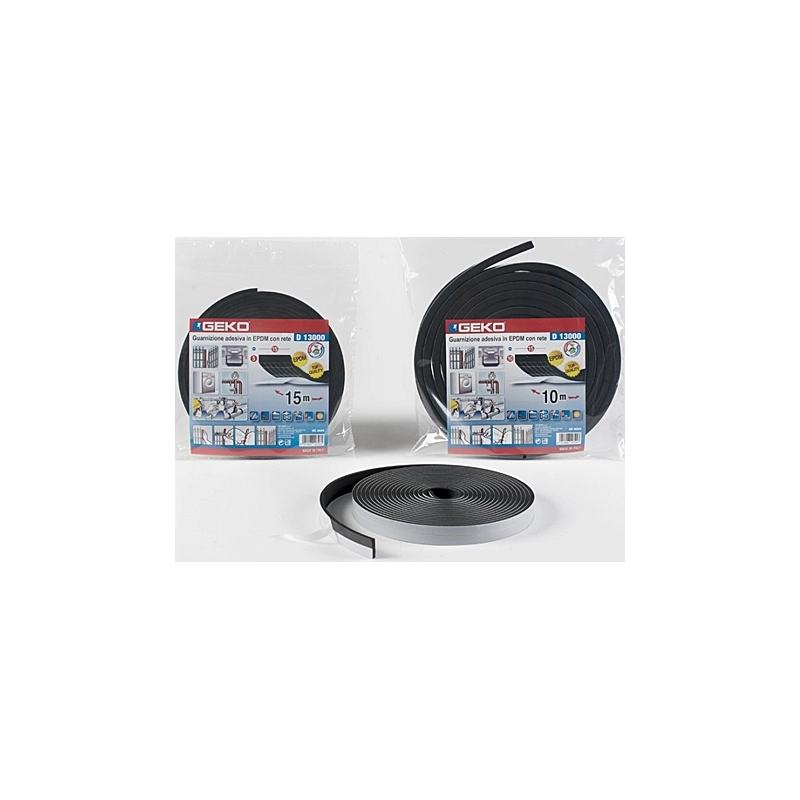 Guarnizione tecnica adesiva in EPDM. Impermeabile, antigelo, anticondensa. Per applicazioni di protezione antiurto, antivibrazione, isolamento, barriera vapore, ecc. Colore nero. Modello = sezione mm/lunghezza m