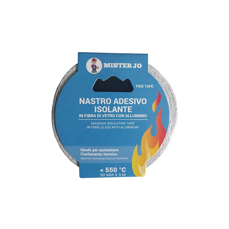 Nastro adesivo isolante in fibra di vetro con alluminio. Resistente fino a 550 gradi. Ideale per aumentare l'isolamento termico. Utilizzabile per evitare perdite di aria calda e calore dalla canalizzazione o vapore acqueo nelle tubazioni di acqua calda. Larghezza 50 mm. Lunghezza 3 mt.