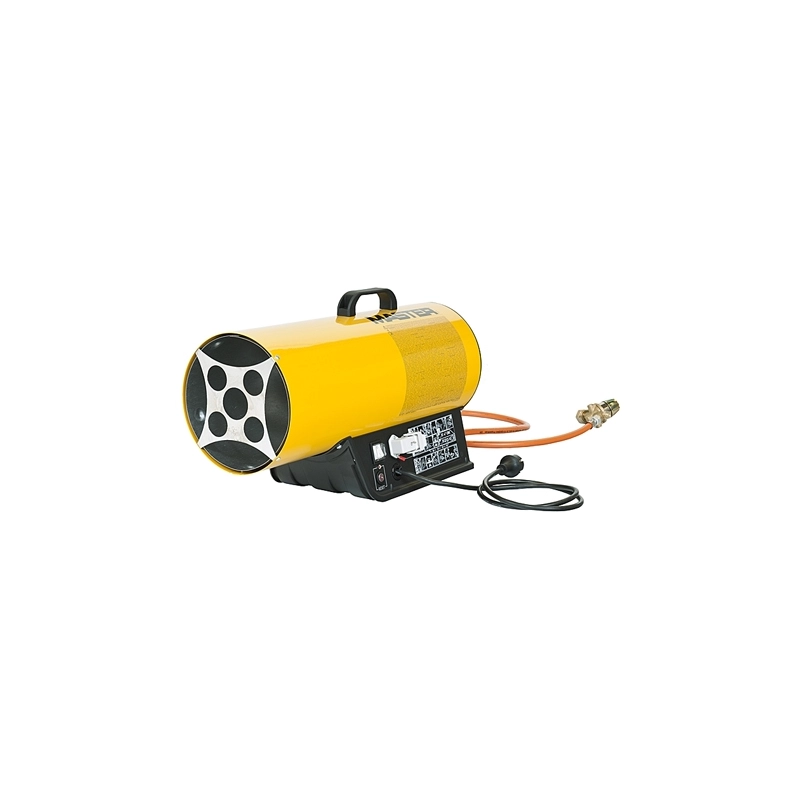 Riscaldatore a gas propano/butano. Accensione elettronica. Completo di termostato ambiente TH5 con cavo da 3 m. Doppia elettrovalvola, protezione termica del motore e termostato sovratemperatura. Tubo e regolatore gas incluso. Modello = articolo/potenza kcal-h