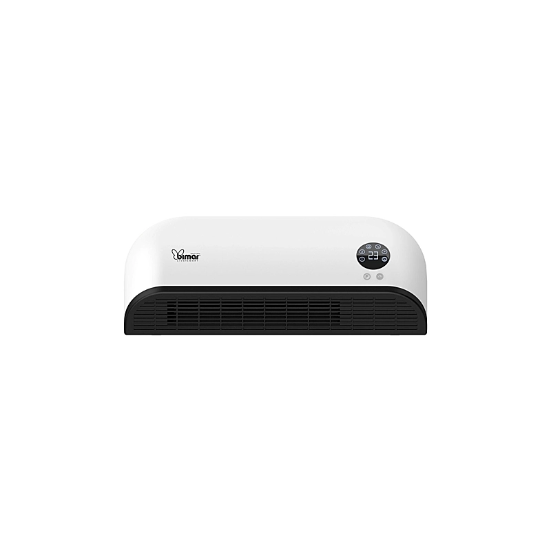 Termoconvettore a resistenza PTC ceramica con telecomando. Funzionamento a parete. 2 livelli di potenza (1000/2000 Watt). Con timer max 12 ore. Programmazione giornaliera e settimanale. Colore bianco. IP22. Dimensioni 456x188x130 mm. Peso 2,2 kg.