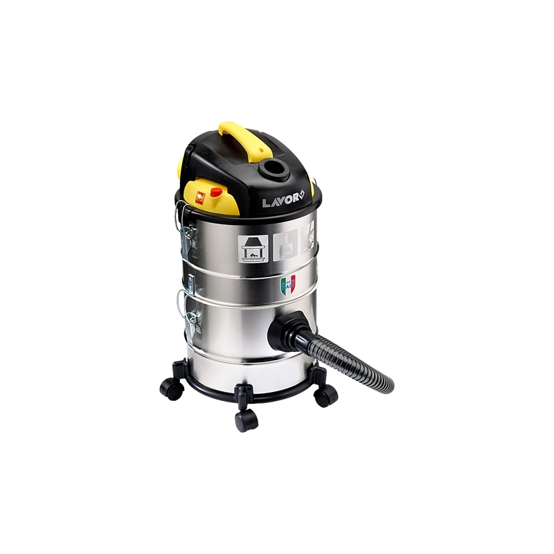Motore silenziato con doppio isolamento. Potenza max 1200W. Aspira sia ceneri fredde che polveri e liquidi. Fusto in acciaio. Tubo flessibile in acciaio. Pulsante scuotifiltro. Utilizzabile come bidone aspiratutto