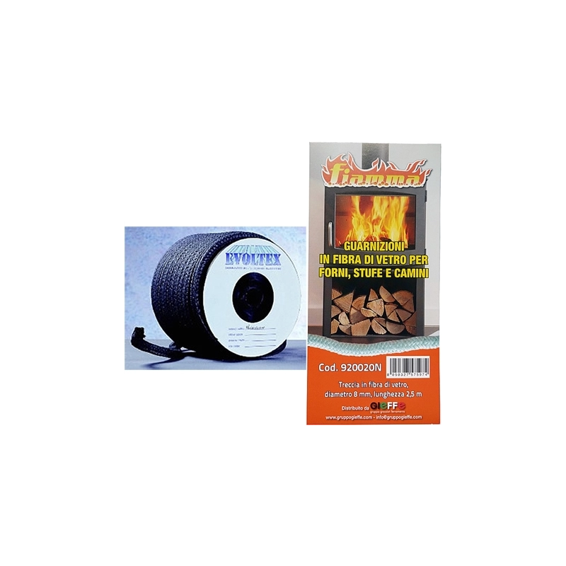 Guarnizione di tenuta realizzata con treccia in fibra di vetro Tricote'. Eccezionalmente morbida, non sfliaccia al taglio. Colore nero. Modello = diametro mm/lunghezza m per confezione
