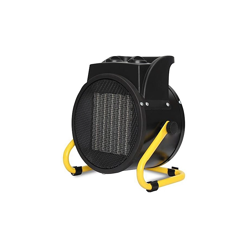 Generatore di aria calda da 3 KW. Tecnologia ceramica PTC per un caldo piu' veloce. Con 2 regolazioni (2 KW o 3 KW), termostato di sicurezza e funzione ventilatore. Cavo da 140 cm con presa CEE 7/7 (schuko). Struttura in metallo. IP20. Dimensioni 247x168x265h mm.
