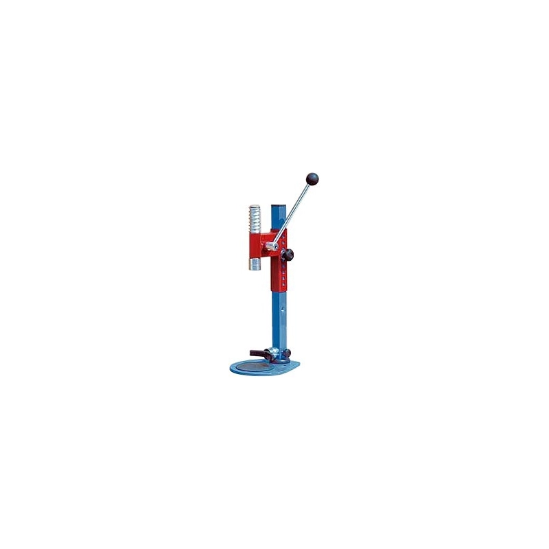 Tappatrice a colonna per tappi corona, base e testata in acciaio smaltato. In dotazione testine diametro mm.26 e 29.