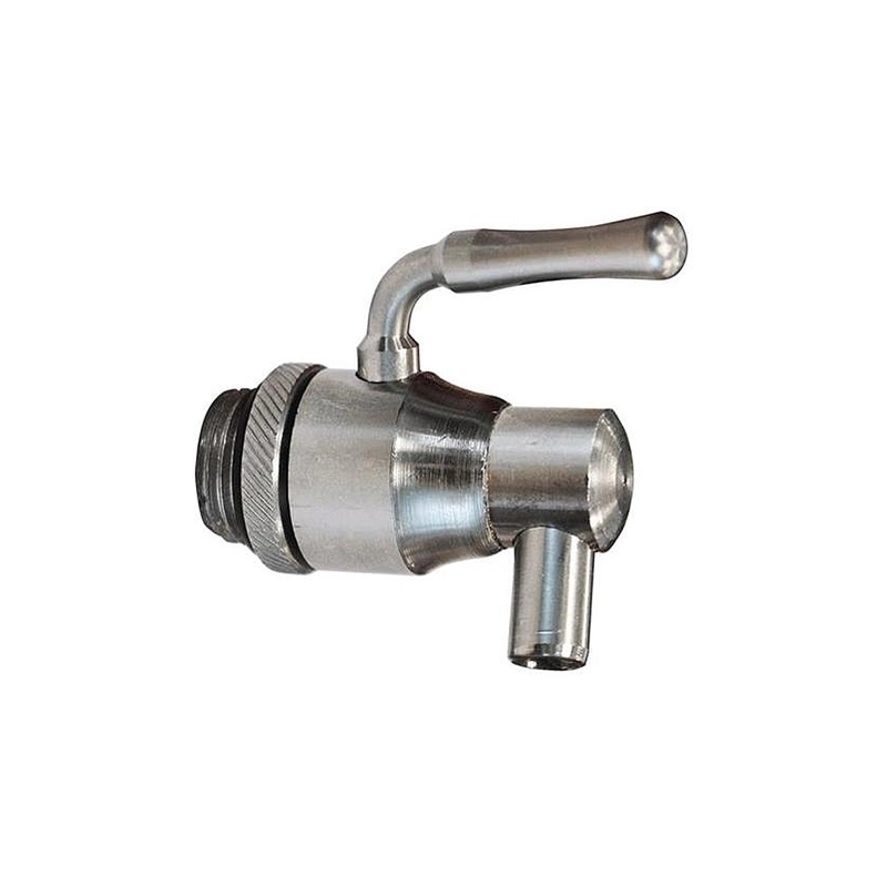 Rubinetto da 1/2" con sfera in acciaio inox 18/10, salvagoccia e con beccuccio ruotabile per botti e contenitori adibiti alla conservazione di liquidi alimentari come olio e vino.