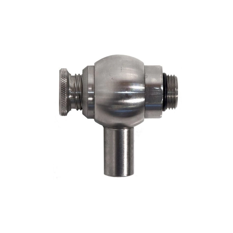 Rubinetto in acciaio inox. O-ring per alimenti. Sistema salvagoccia a sfera con attacco 1/2" e tappino in plastica.